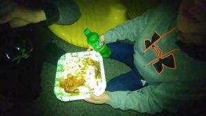 This page also refers to the family recipe itself in addition to the video. It is a square paper plate of food comprised of some peppers, grilled chicken and salad. It is then dressed with Mountain Dew and Pepsi, and seasoned with gravel pebbles from the playground.