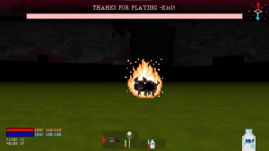 What's 9 + 10? is the true final floor of Rodney's Tunnel, accessed after defeating Rodney. It is not a part of any major area and is made up of assets from previous parts of the game. It recycles the dark corrupted sky of Between Ricky Hills and the tileset of Signature Walls. It is only inhabited by an incendiary pig named THANKS FOR PLAYING -Kjolt. This area serves as a final thank you message to the few people who played and finished the game.